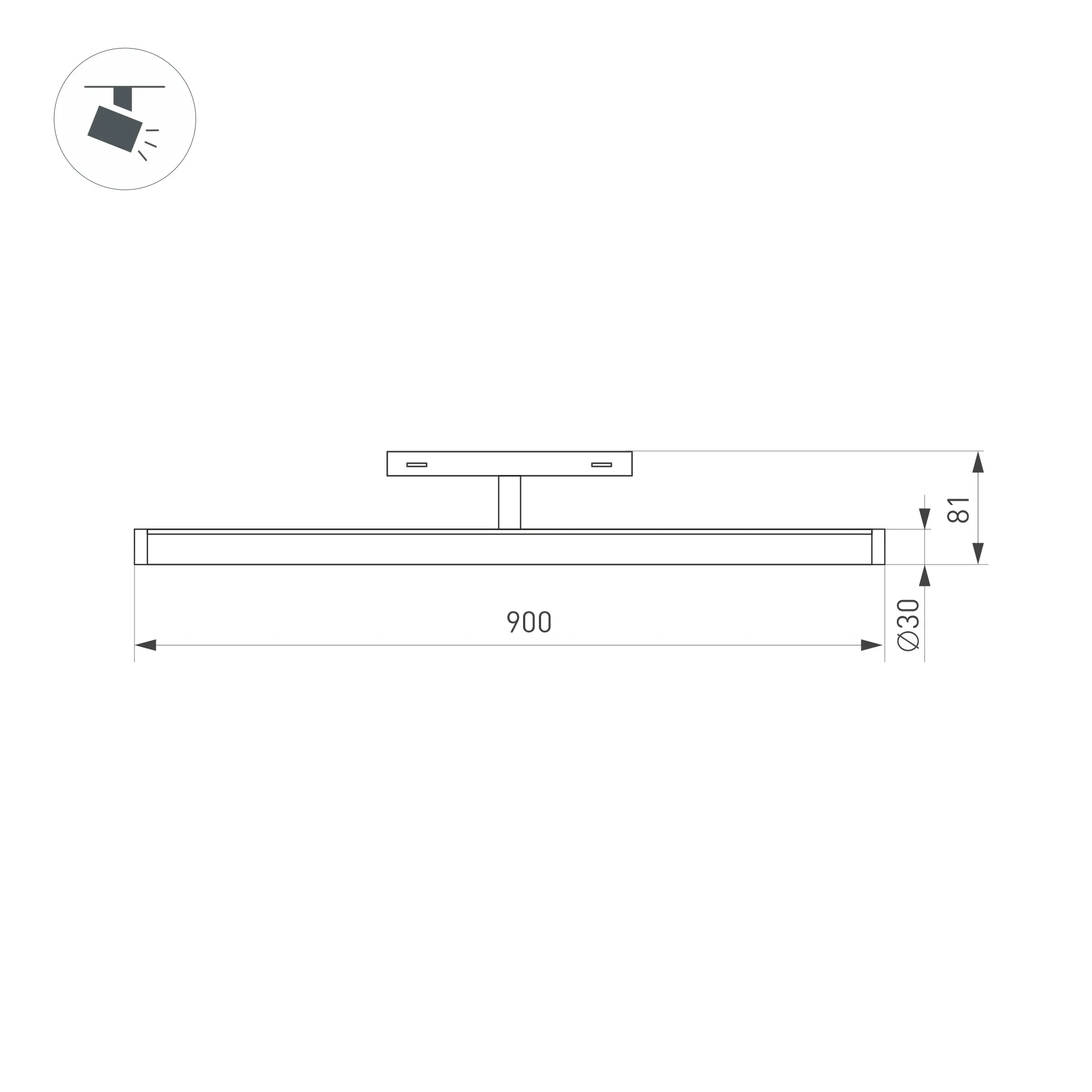 Светильник для магнитных треков MAG-ORIENT шириной 26 мм. Мощность 30 Вт, св. поток 2600 лм, 90 лм/Вт, теплый 3000 K, CRI>90, угол 180°, напряжение питания 48 В. Белый фигурный корпус из алюминия, экран поликарбонат, степень защиты IP20. Размер: диаметр 30 мм, длина 900 мм, высота 81 мм. Монтаж на трек MAG-ORIENT. Пульсация <1%.